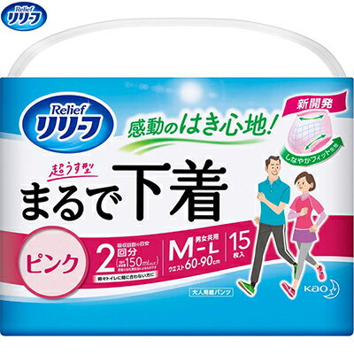 リリーフ パンツタイプ 超うす型まるで下着 2回分 ピンク M-Lサイズ 15枚 *花王 Relief 介護用品 失禁用品 大人用紙おむつ オムツ パンツタイプ